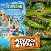 Enjoy Crocodile Park & Aqualand Torremolinos!Have fun at the two best parks in Malaga with our best offer.This package includes one day ticket to Crocodile Park and one day ticket to Aqualand Torremolinos.Buy your ticket now and decide later when you want to visit. Visiting days do not have to be consecutive.Check the opening calendar for Crocodile Park.Check the opening calendar for Aqualand Torremolinos.Tickets are valid for 90 days from the date of purchase. No exchanges or refunds are permitted. Please check the opening times of the parks before making your purchase.